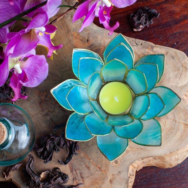 Lotus Sfeerlicht blauw goudrand
