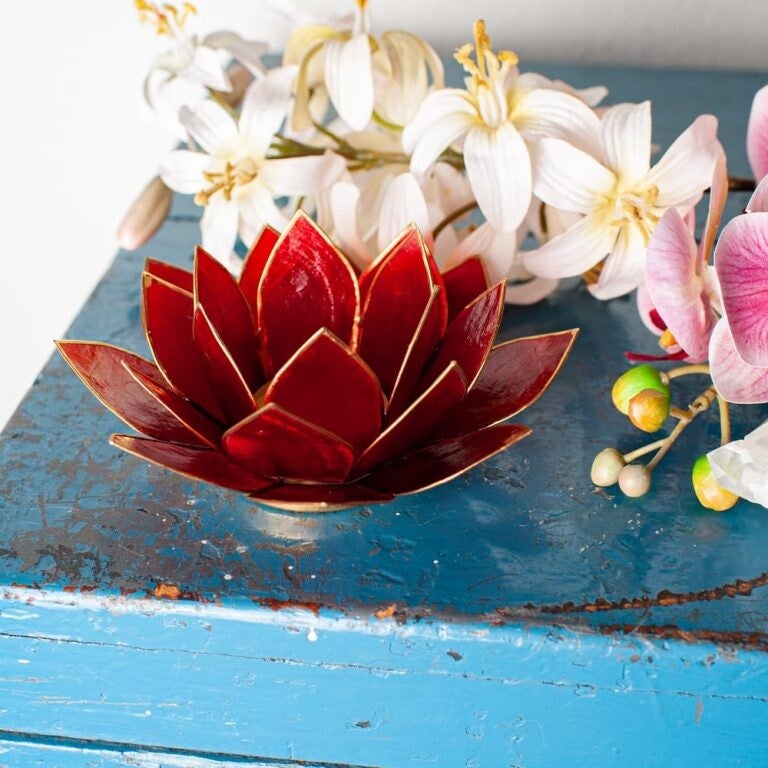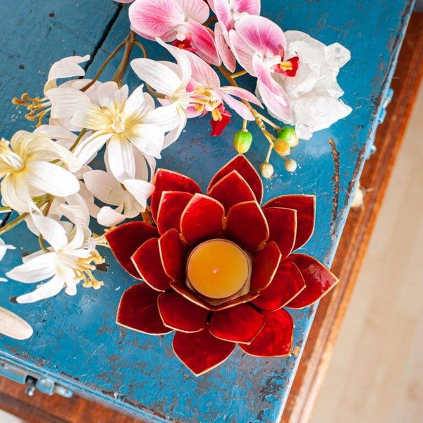 Lotus Sfeerlicht Rood 1e Chakra Goudrand