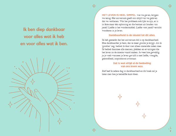 Als je elke dag probeert om kort stil te staan bij al het goede om je heen, stel je jezelf open voor al het moois dat het universum te bieden heeft. Met dit invulboek leer je over de kunst van het dankbaar zijn, zodat het een vanzelfsprekend onderdeel wordt van je leven.