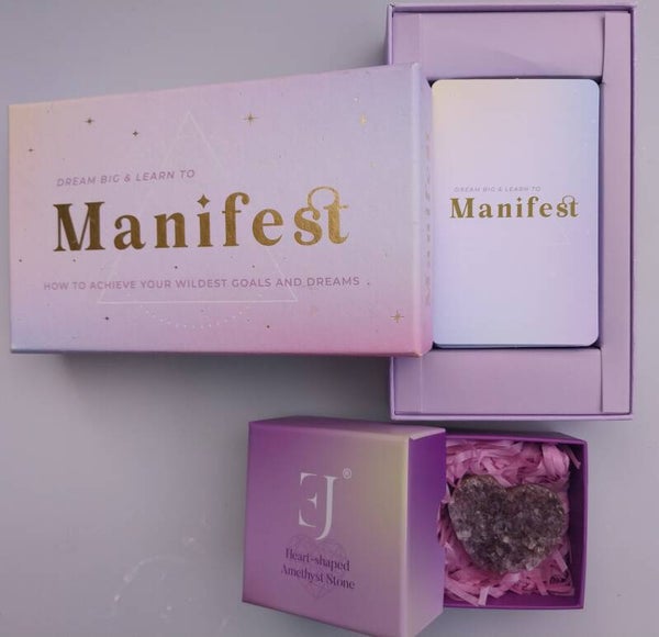 Deze mooie combinatie is ideaal voor elke situatie. De manifest kaartjes leren je om dingen in je leven te verwezenlijken en de amethist geeft je het vertrouwen dat je nodig hebt.