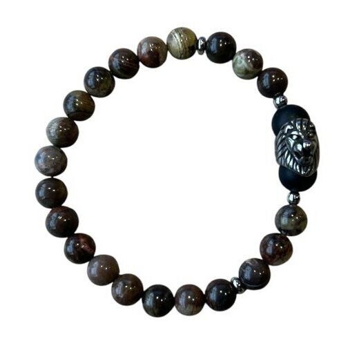 Heren armband van natuursteen Picasso Jaspis met leeuw kraal