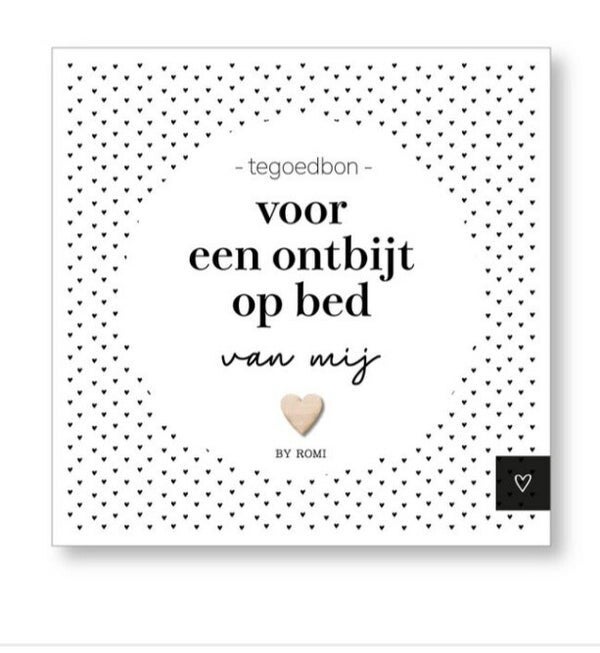 Deze tegoedbon is voorzien van een houten hartje. Op de achterzijde is ruimte voor en lief persoonlijk berichtje. De tegoedbon wordt geleverd met een witte envelop.
